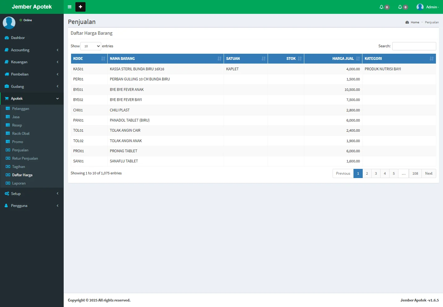 Antarmuka simpel dan intuitif, membuat pengelolaan apotek jadi cepat tanpa perlu keahlian IT khusus.