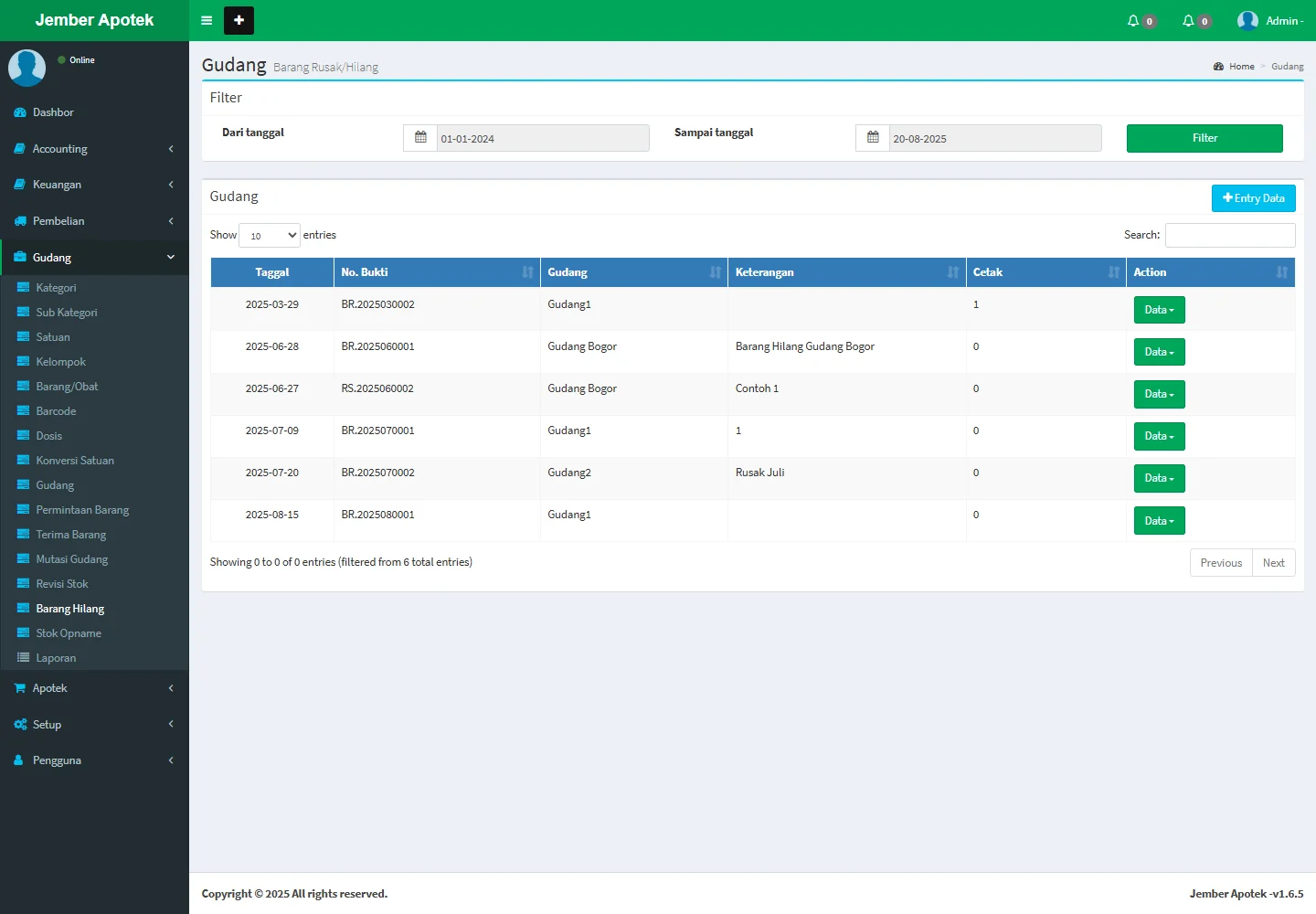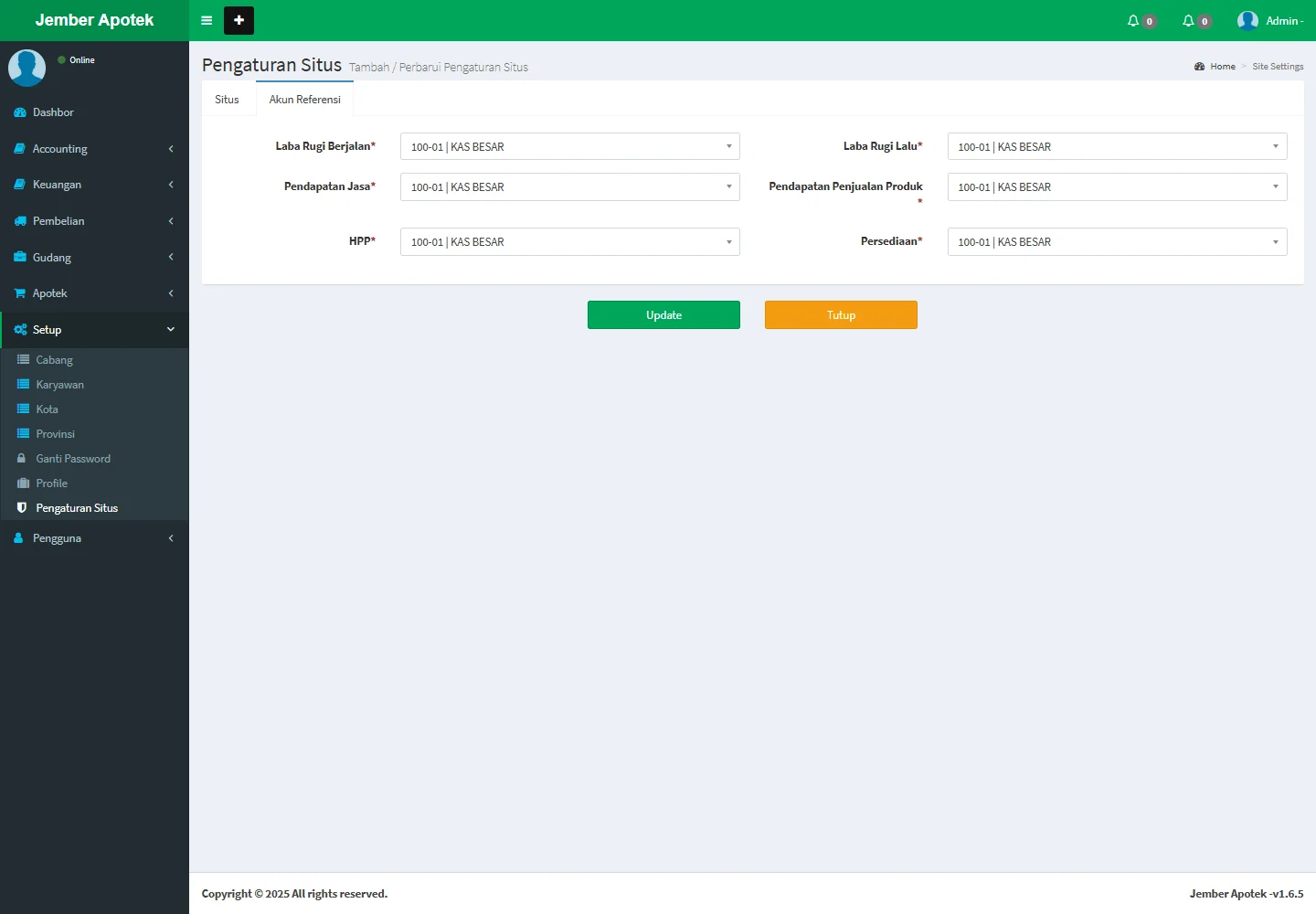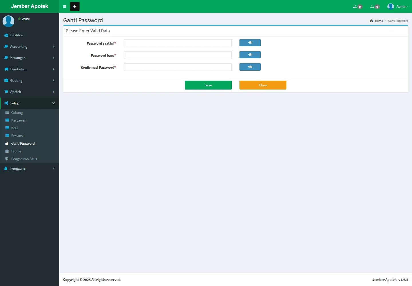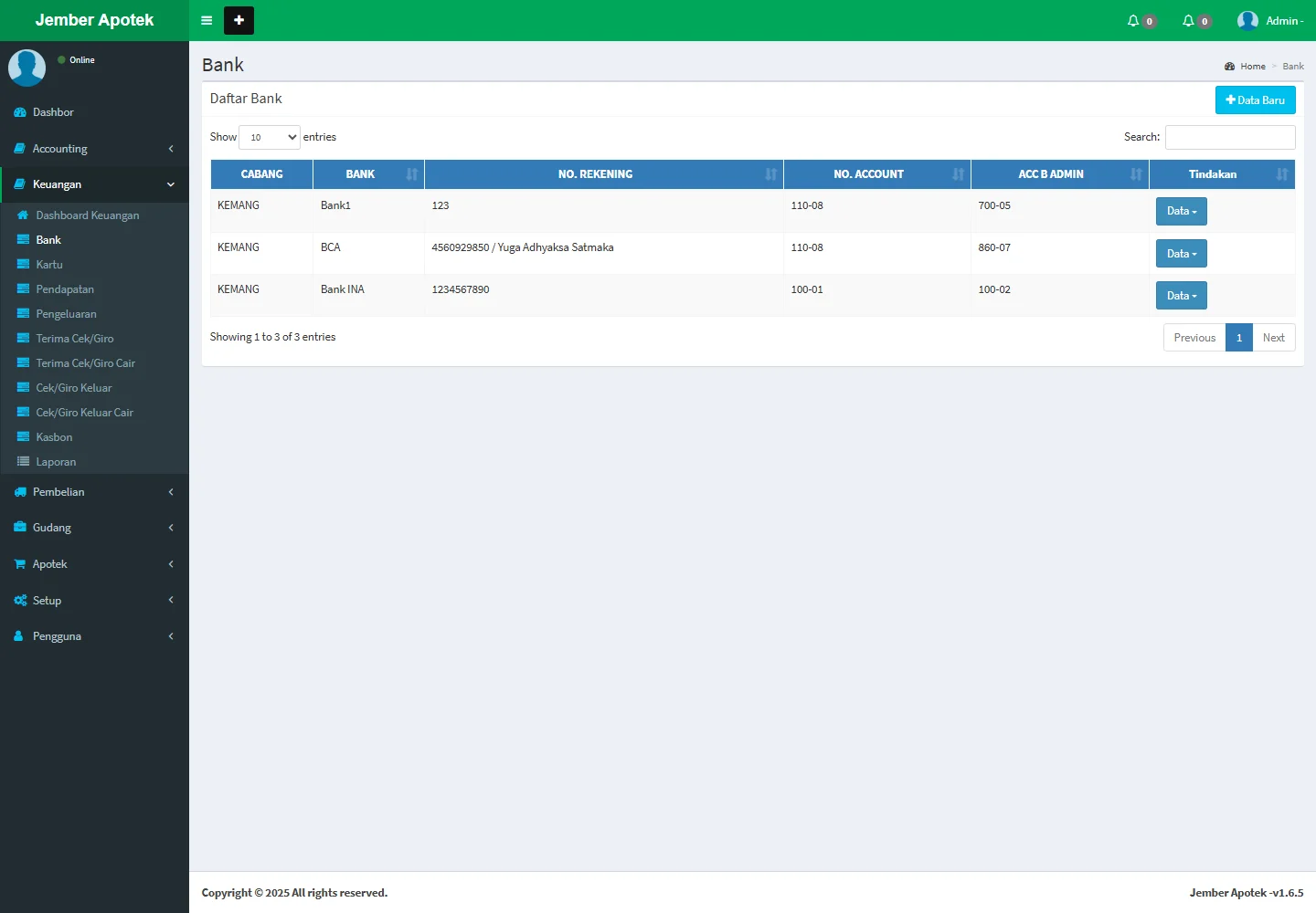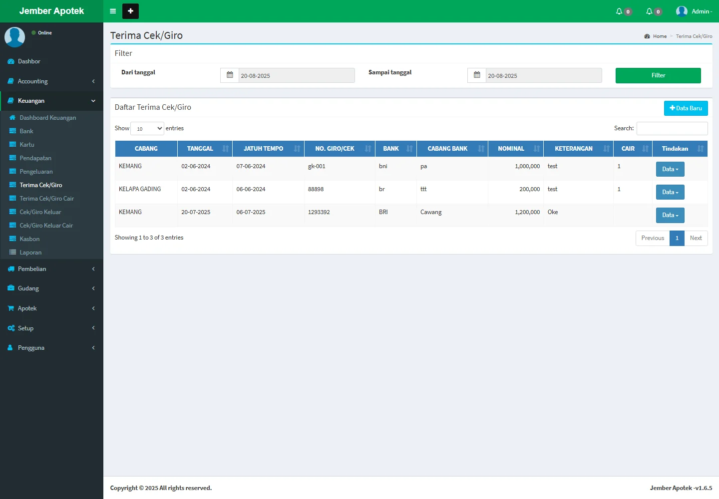Kelola pembukuan lengkap mulai akun, neraca awal, anggaran, tutup buku, jurnal, aktiva tetap, hingga laporan keuangan Apotek.