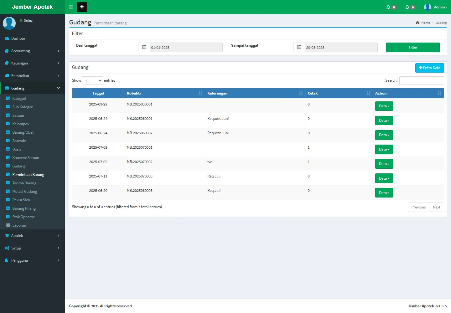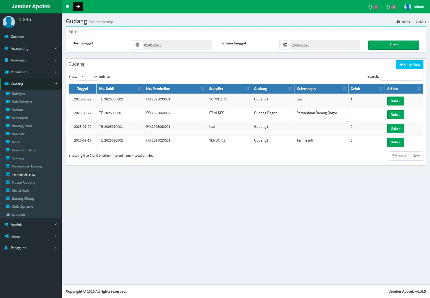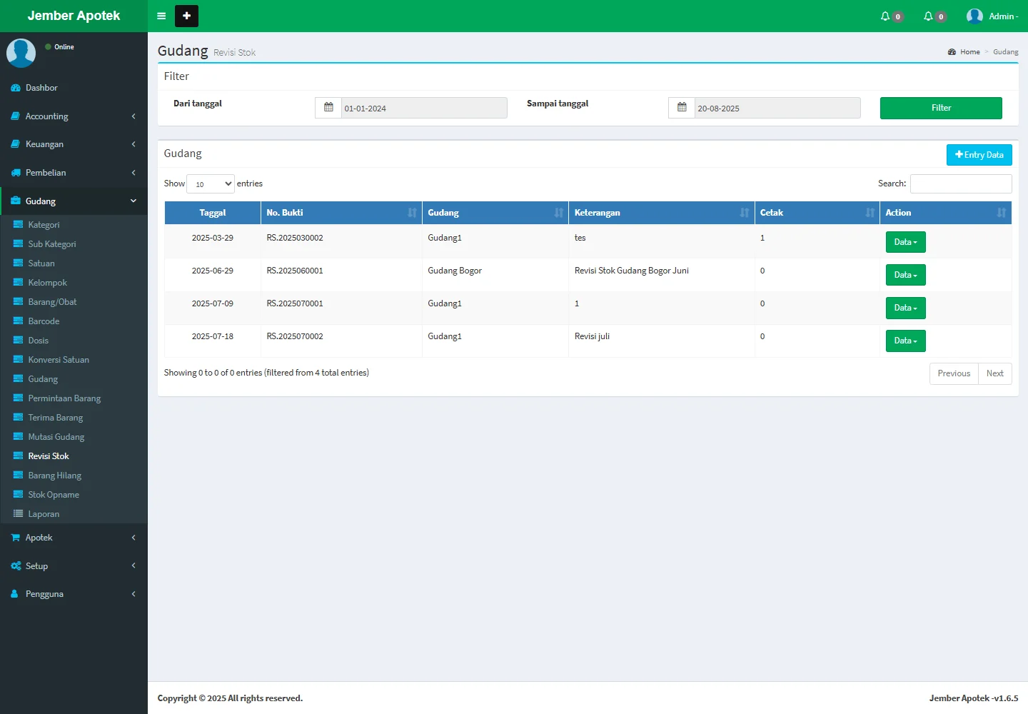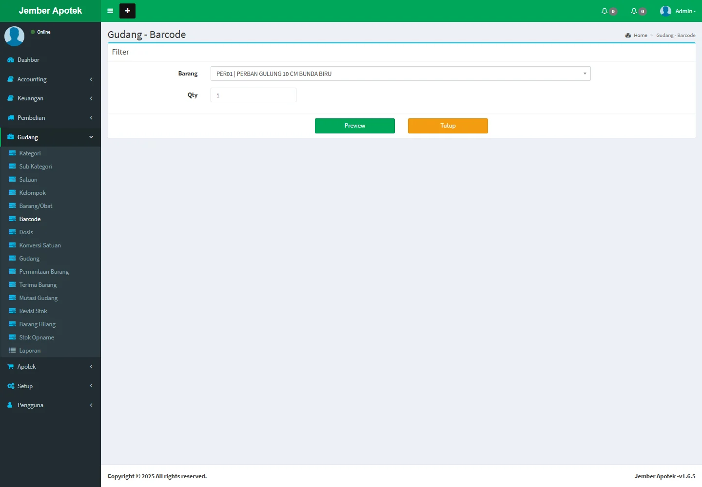 Atur kategori barang, dosis, barcode, serta kelola mutasi dan revisi stok secara detail. Ditambah fitur lengkap pengelolaan resep, racik obat, dan transaksi penjualan supaya operasional apotek berjalan lancar tanpa hambatan.
